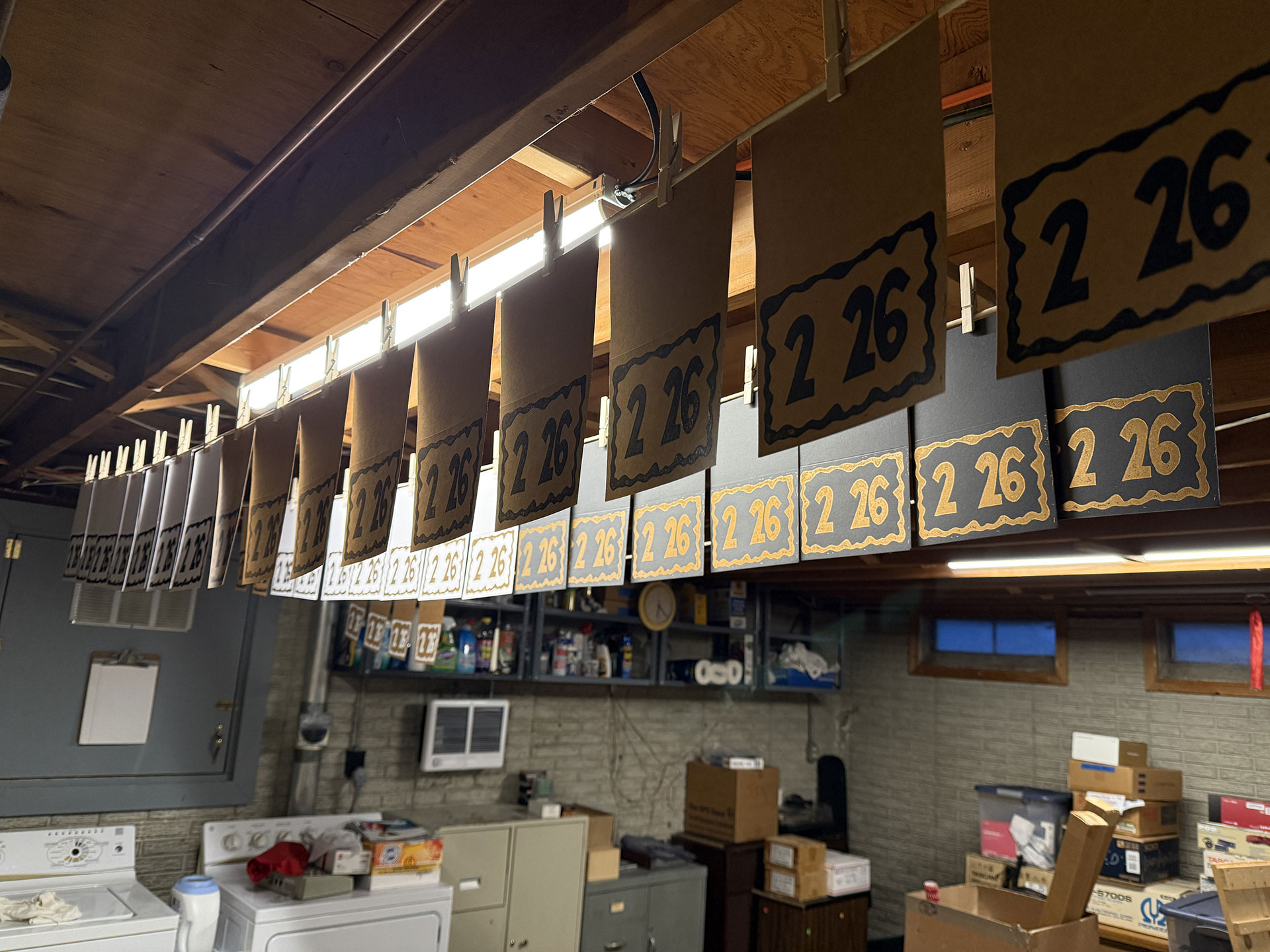 The best part about the process, though, was performing the work in my “new” workspace, which wasn’t new at all because it’s the basement of the house I grew-up in. In the fall, I moved back into the house and have been discovering the pros-and-cons of the situation over the past three months. A definite PRO is the basement workspace which includes: a workbench that’s the perfect height (I’m not hunched-over the entire time), a stationary tub at the ready and clotheslines for hanging prints to dry!